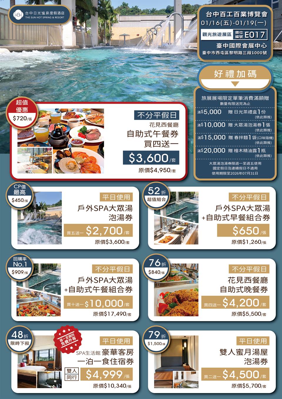 2026 台中日光溫泉度假酒店 01月台中線上旅展