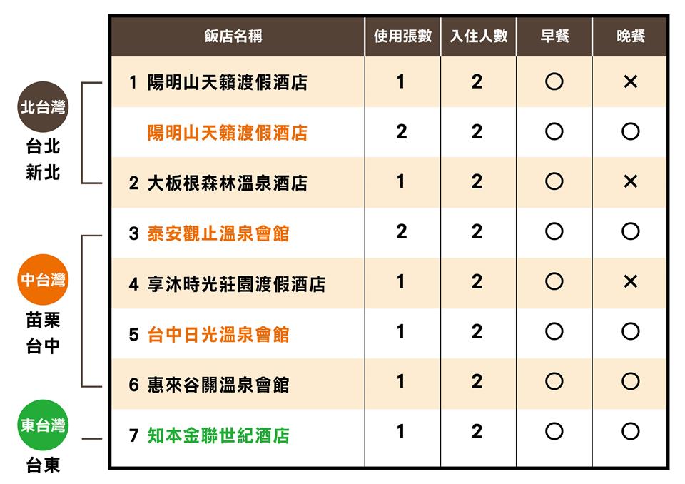 1.每張只要NT$5500,依各家飯店使用規則可於7家溫泉飯店擇一使用。