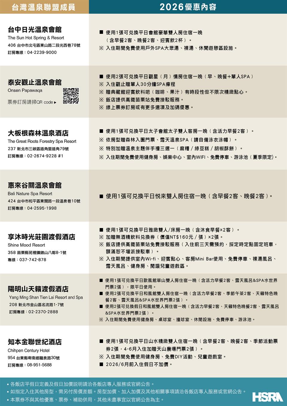2026 台灣溫泉飯店聯盟聯合住宿券即日起熱烈開賣!!!