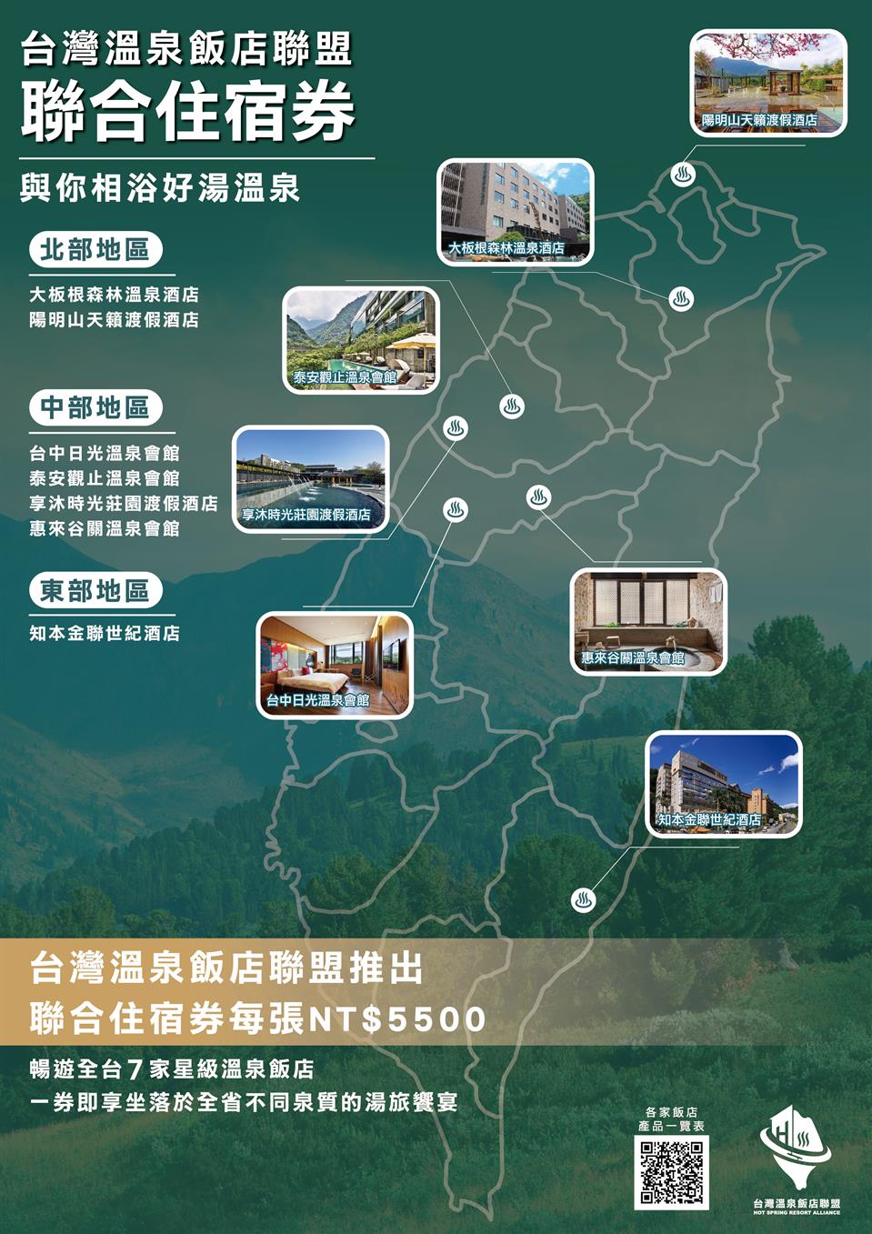 台灣溫泉飯店聯盟推出聯合住宿券,邀你一起湯旅全台灣,暢遊全台9家星級溫泉飯店,